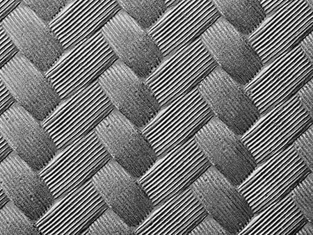 PAN 전구 물질이라 불리는 아크릴 섬유(폴리아크릴로니트릴 섬유)를 약 1000℃의 고온에서 가열해 탄화시킨 섬유입니다. PAN 전구 물질의 직경은 1개당 5~15 미크론으로 머리카락의 약 10분의 1에 불과하지만, 인장 강도는 철의 약 10배, 밀도(체적당 질량)는 약 4분의 1이기 때문에 비강도(중량당 강도)가 약 40배입니다. 강도(쉽게 부서지지 않는 정도)뿐만 아니라 탄성률(쉽게 변형되지 않는 정도)도 뛰어난 재료입니다.