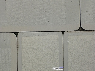 4K 디지털 마이크로스코프 「VHX 시리즈」는 지금까지 콘트라스트가 낮아 관찰이 어려웠던 세라믹 소재 제품의 미세한 외관 불량도 암시야·명시야 조명의 비교로 관찰할 수 있습니다. 크랙 및 절연 불량 등도 선명하게 포착할 수 있습니다.