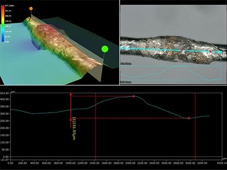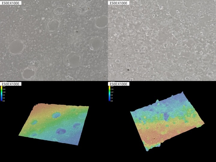 3D 심도 합성 기능으로 소재 및 제조 조건의 차이에 따른 표면 상태 차이를 가시화할 수 있습니다.