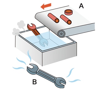 - A: 달구기(금속이 적색이 될 때까지 가열)