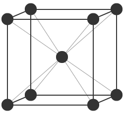상온 상태의 철은 정육면체의 각 모서리와 중심에 원자가 위치하는 「체심 입방 격자」라는 형태입니다.