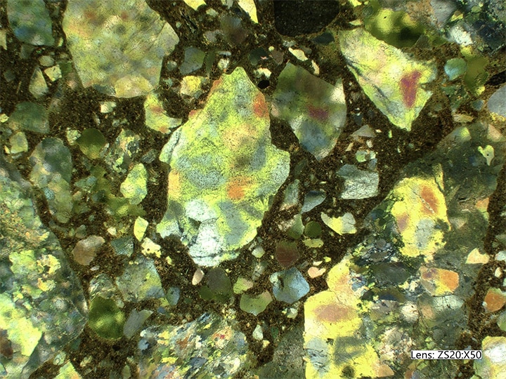 석유 업계의 플랜트 건설 및 건축 업계 등의 소재 연구, 대학의 연구 기관 등 폭넓은 분야에서 광석과 암석 등에 함유된 광물의 확대 관찰이 필요합니다. 광물은 대부분의 경우 육안이나 확대경을 이용한 거시적인 실태 관찰로는 함유물의 동정 등이 어렵기 때문에 편광 현미경을 이용한 관찰이 이루어집니다.