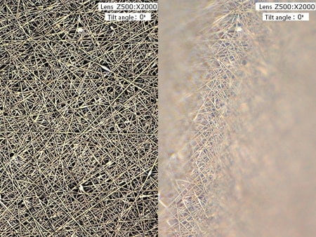 KEYENCE의 4K 디지털 마이크로스코프 「VHX 시리즈」를 이용한 나노 화이버의 최신 관찰 사례를 소개합니다.