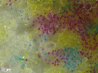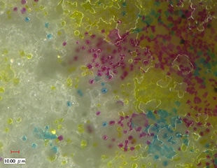 4K 디지털 마이크로스코프 「VHX 시리즈」는 고해상도 4K 화상으로 잉크의 표면 상태를 선명하게 관찰할 수 있기 때문에 잉크가 묻은 상태를 정확하게 평가할 수 있습니다.