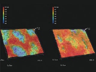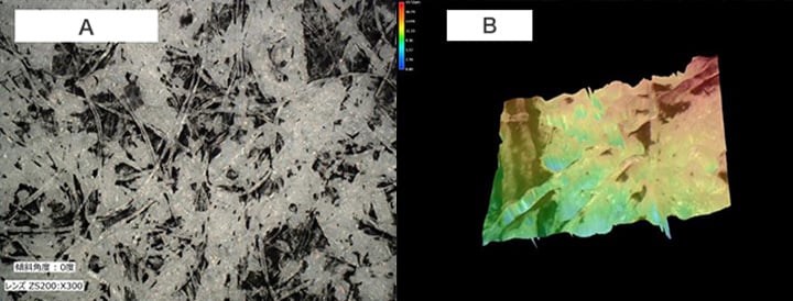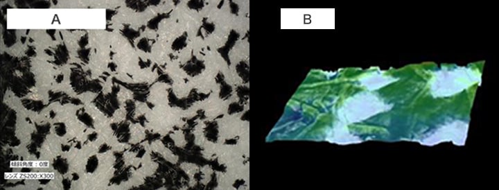 자동 면적 계측에서는 용지와 같이 표면에 요철이 있는 대상 물체라도 화상에서 계측 범위를 지정하기만 하면 토너의 입자 해석을 고정도로 자동 실행할 수 있습니다. 또한, 3D 형상 측정은 불과 몇 초 만에 3D 치수 및 높이 데이터에 의한 3D 형상의 색 구분 표시가 가능하므로 원활한 해석과 비교가 실현됩니다.