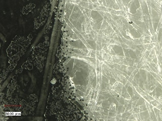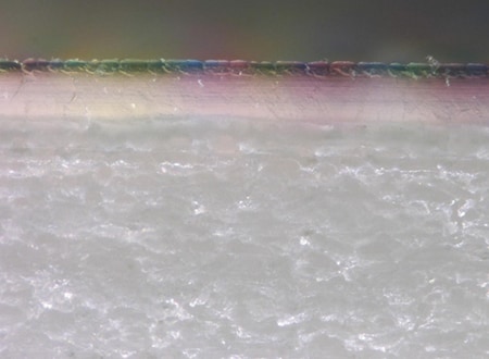 기존의 금속 현미경을 사용하여 잉크의 침투를 고배율로 관찰했을 때는 샘플 단면의 품질이 충분하지 않은 경우, 단면에 아주 작은 경사가 있어도 초점이 잘 맞지 않아 관찰이 어려웠습니다.