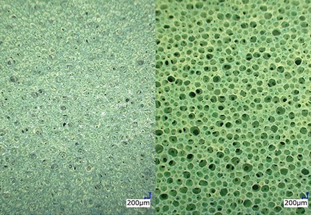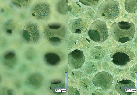 기존의 현미경으로는 피사계 심도의 한계 및 해상도 부족으로 스폰지 롤의 복잡한 요철 형상을 관찰하기 어려웠습니다. 4K 디지털 마이크로스코프 「VHX 시리즈」는 직감적인 조작을 통해 6000배까지 배율을 전환하는 「심리스 줌」과 「라이브 심도 합성」으로, 고배율인 동시에 고해상도이며 관찰 부분 전체에 풀 포커스가 맞는 화상을 생성하여 스퐅지 롤의 미세한 요철 형상 관찰을 간단한 조작으로 실현합니다.