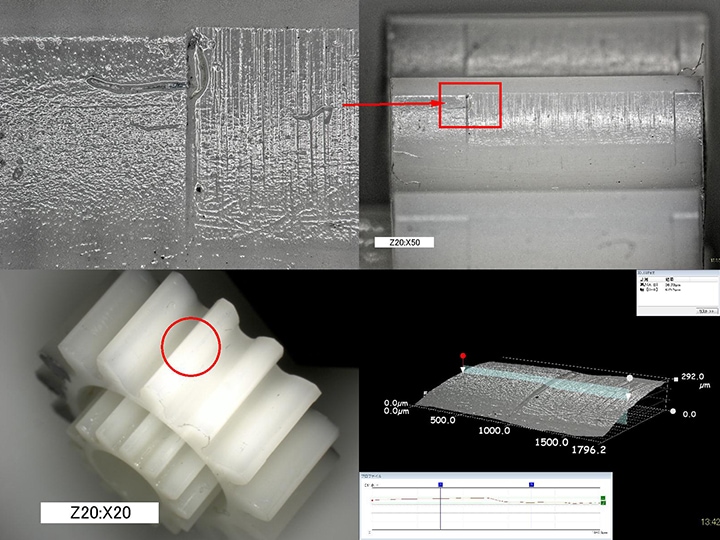플라스틱(수지)제 기어의 접촉면 관찰·3D 측정