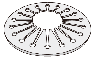 - 원추형 판 스프링의 가운데를 도려낸 형상입니다. 나사 유격 방지용 와셔가 대표적입니다.