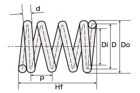 기호: Di(mm)자유 높이 부하를 걸지 않은 자유로운 상태의 스프링 높이