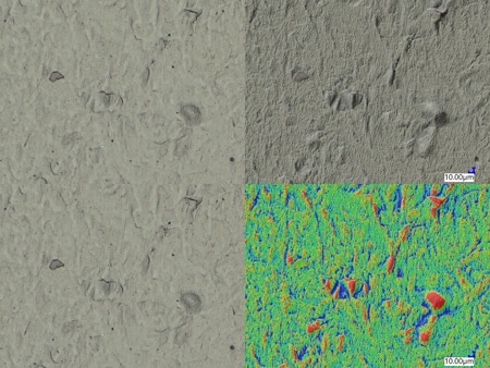 용사는 영어로 Thermal Spray라고 하며 금속이나 세라믹, 서멧 등을 부자재 표면에 용융 분사하여 기능성 피막을 형성하는 표면 처리 기술입니다. 내마모·내부식·내절연성·치수 복원 등 다양한 용도로 사용됩니다. 여기에서는 디지털 마이크로스코프를 이용한 용사 처리 후 표면 및 피막의 관찰·측정 사례를 소개합니다.