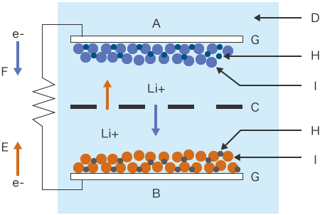 리튬 이온 전지의 기본 구조 대표 예를 아래 그림에서 설명하고 각 부분과 그 역할에 대해 설명합니다.