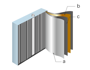 - C)세퍼레이터: 폴리올레핀이라 불리는 화합물(폴리에틸렌 <PE>이나 폴리프로필렌 <PP> 등)로 이루어진 미세 다공막으로 표면에 1 μm 이하의 미세한 구멍이 있습니다. 세퍼레이터는 양극과 음극을 분리하여 두 극의 접촉으로 인한 발화를 방지합니다.