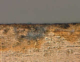 「피트」, 「핀 홀」은 모두 도금 피막 표면의 함몰형 결함입니다. 석출 불량으로 소재 표면까지 도달하지 않고 거시적(매크로)으로 확인할 수 있는 구멍이 「피트」, 소재 및 바탕층까지 도달하는 작은 구멍이 「핀 홀」입니다. 후자는 도금 피막의 「팽창」이나 소재의 「부식」 등 2차적인 불량·결함의 원인이 되기도 합니다.