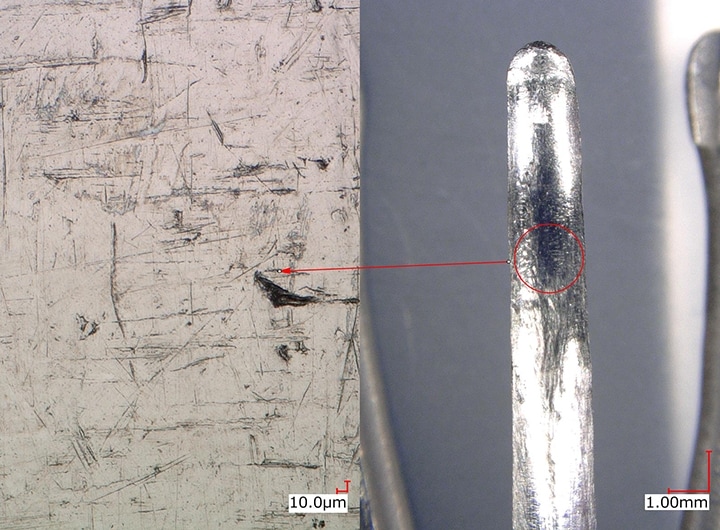 따라서 이물질이나 흠집 또는 피트 및 핀 홀을 정량적으로 평가할 수 있습니다. 「VHX 시리즈」 1대를 통해 확대 관찰부터 2D·3D 측정까지 효율적으로 실현됩니다.