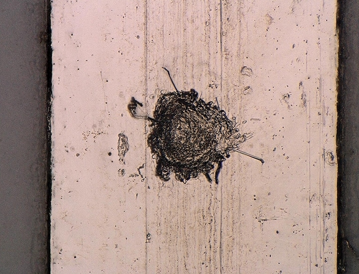 「프리 앵글 관찰 시스템」과 「고정도 X·Y·Z 전동 스테이지」를 이용하여 기존의 현미경으로는 불가능했던 경사 관찰을 실현합니다. 자유로운 앵글, 관찰 위치를 통해 결절(혹) 형상으로 성장한 휘스커를 효과적으로 관찰할 수 있습니다.