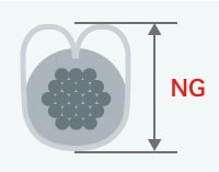압착 과다 - 크림프 하이트가 규정보다 높은 경우, 「압착 부족」으로 전선에 인장력이 걸렸을 때 이탈이 발생합니다. 한편, 규정보다 낮은 경우는 「압착 과다」로 배럴이 심선에 파고들어 손상이 발생합니다.