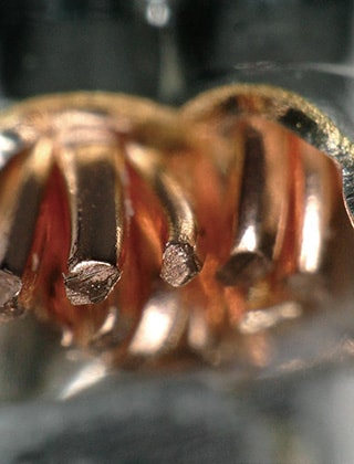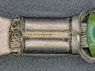 4K 디지털 마이크로스코프 「VHX 시리즈」는 「헐레이션 제거」·「링 제거」 기능을 통해 금속면의 광택에 따른 반사를 제거하여 심선 코킹 상태를 정확하게 관찰·파악할 수 있습니다.