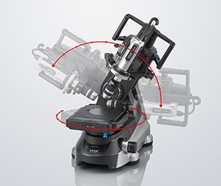 3축(시야·회전축·경사축)을 쉽게 맞출 수 있는 조정 기구에 의해 자유로운 앵글로 관찰할 수 있게 되었습니다. 또한, 기울이거나 회전시켜도 시야에서 벗어나지 않는 유센트릭성을 실현하여 입체적인 물체의 외관 관찰을 크게 효율화합니다.