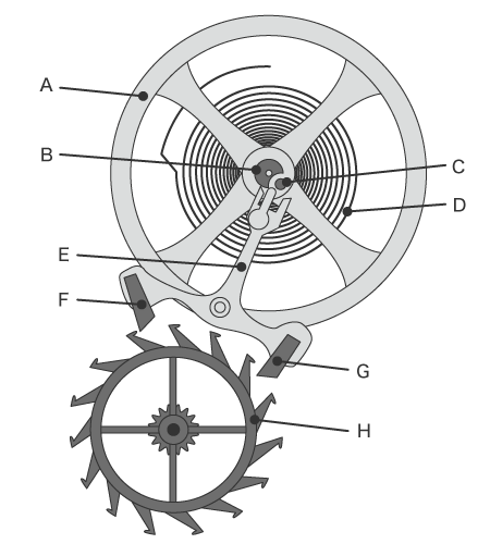 기계식 시계의 무브먼트 동력원은 헤어스프링으로 밸런스라는 부품의 중심에 조립되어 있습니다. 헤어스프링이 신축을 반복하며 밸런스가 왕복 회전 운동(진동)을 합니다.