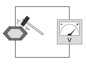 수정은 기계적인 압력을 가하면 전기가 발생합니다(압전 현상). 반대로 전기(전압)를 가하면 기계적인 변형이 발생합니다(역압전 현상). 수정 진동자는 이 역압전 현상을 이용합니다.