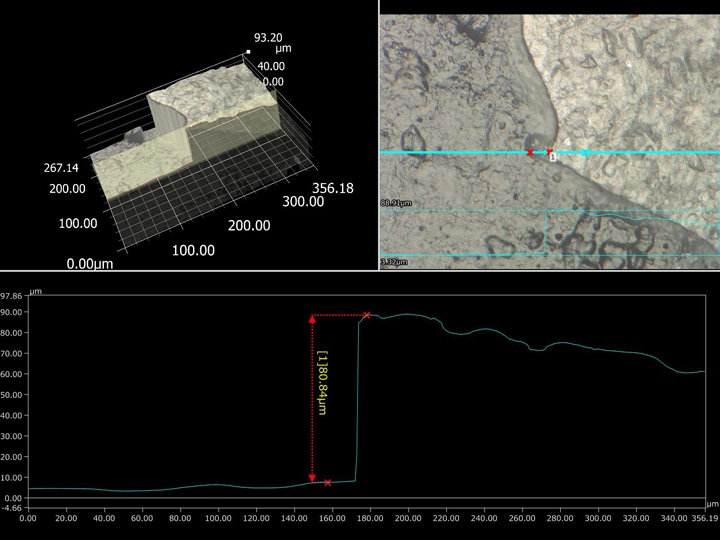 3D 형상 측정을 통해 코팅막 박리가 정량화되었습니다.