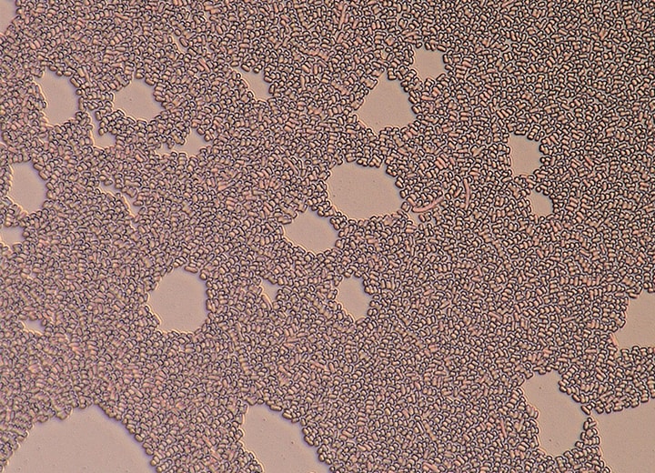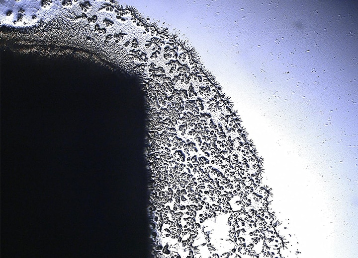 4K 디지털 마이크로스코프 「VHX 시리즈」는 효모균이 형성한 콜로니와 같은 미세한 대상 물체도 선명한 고배율 4K 화상을 취득할 수 있습니다.