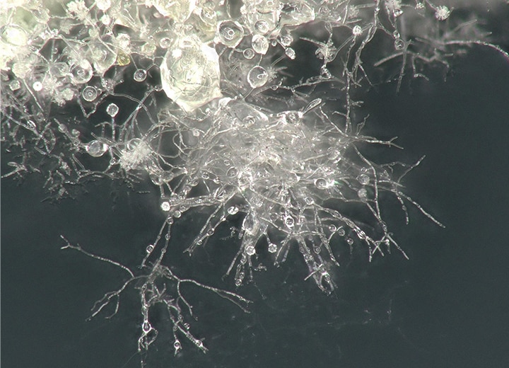 여기서는 「VHX 시리즈」가 실현하는 다양한 조명 조건 및 고성능 렌즈, 4K CMOS를 활용한 곰팡이 및 그 포자, 균사의 관찰 사례를 소개합니다.