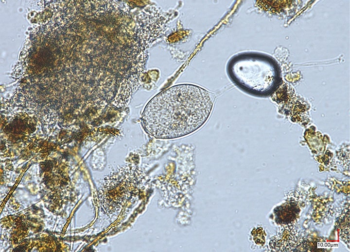 다음은 액체 내 미생물의 4K 화상을 이용한 관찰 사례입니다. 유리보텀 디시 등 빛이 투과하는 용기는 액체 내에 있는 대상 물체라도 내장된 백라이트를 활용하여 미생물을 선명하게 관찰할 수 있습니다. 또한, 세척 전 샘플과 같이 액체 내에 미세한 이물질이 다소 혼재된 상태라도 우수한 포커스 성능을 통해 선명한 4K 화상을 취득하여 관찰할 수 있습니다.