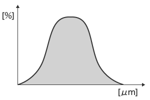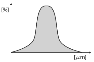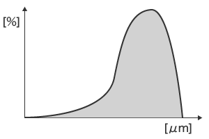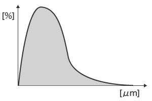 일반적으로 입도 분포는 가로축이 입자 직경[μm], 세로축이 빈도[%]를 나타내는 그래프로 표현됩니다.