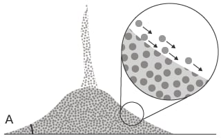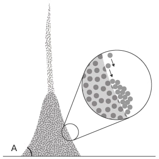 유동성이 높은 분체는 모래와 같은 과립 형태인 경우가 많아 원추 모양으로 쌓아 올리려 해도 아래쪽이 퍼지며 무너집니다.