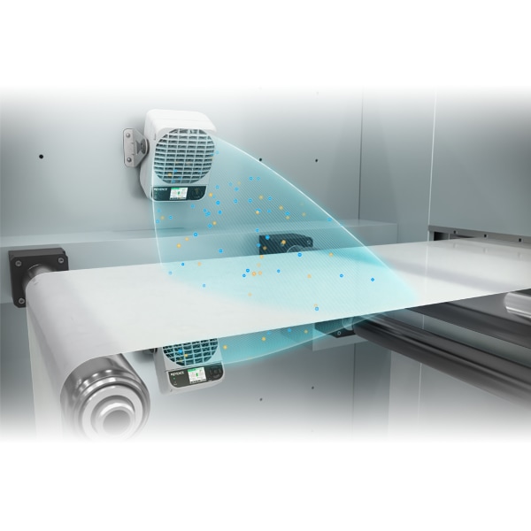 정전기가 많이 발생하는 필름을 제전하기 위해서는 양면에 각각 이오나이저를 설치해야 하여 공간이 부족하게 됩니다. 이런 경우는 스폿 타입을 활용하면 공간의 제약없이 적절하게 제전할 수 있습니다.