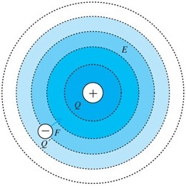 전하량 Q[C]의 점 전하가 있으면 그 주변 공간의 전계 강도는 점 전하로부터의 거리 r[m]의 제곱에 반비례합니다.