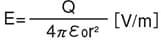 이상의 수식으로 점 전하가 만들어내는 전계 강도는