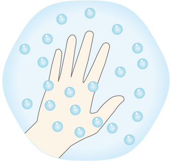 「습도가 높다」는 것은 바꾸어 말하면 공기 중의 수분이 많은 상태입니다. 공기 중의 수분이 많은 장소에서는 몸에 작은 물 입자가 많이 닿습니다. 그러면 피부가 촉촉한 느낌이 듭니다. 이것은 피부뿐만이 아니라 다른 여러 가지 물체에도 일어나는 현상입니다.