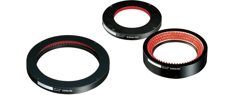 낮은 앵글에서 대상 물체의 에지에 조사할 수 있는 로 앵글 조명. 위쪽에서 직접 비추는 조명은 빛이 확산되므로, 인식이 곤란한 에지나 표면 상의 요철은 경사진 방향에서 조사하여 음영의 콘트라스트를 촬상, 판별합니다.