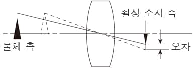 컴팩트 사이즈와 고성능을 균형있게 실현하는 물체 측 텔레센트릭 방식을 채택하였습니다. 이 방식은 소직경 렌즈이면서 대상 물체 측의 주광선이 렌즈의 광축에 대해 평행하기 때문에 대상 물체가 상하로 움직이거나 초점이 어긋나더라도 촬상 사이즈의 변동이 적고 측정 오차가 거의 발생하지 않습니다.