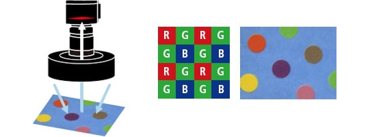 대상 물체에서 반사된 백색광이 컬러 필터를 통해 촬상 소자로 수광되어 컬러 화상이 생성 됩니다.