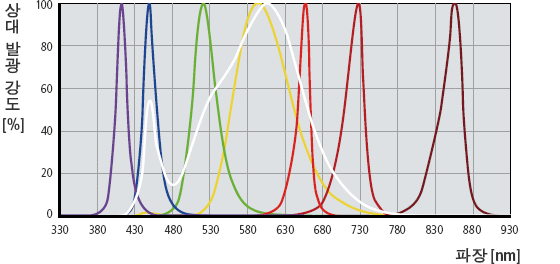 - 폭넓은 파장으로 미묘한 색 차이도 간단 검출