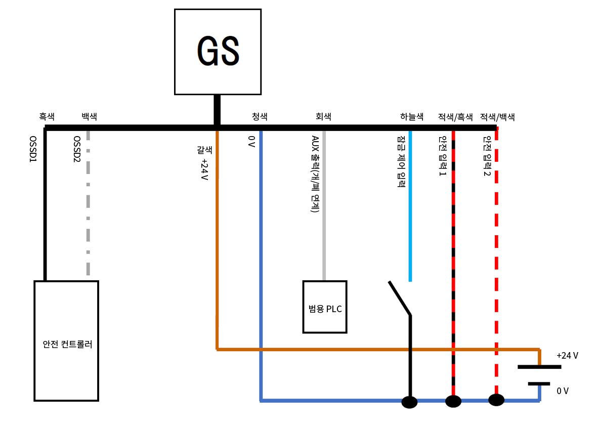 - 필수에 체크되어 있는 배선은 OSSD를 정상적으로 ON/OFF 시키기 위해 필요한 배선입니다.