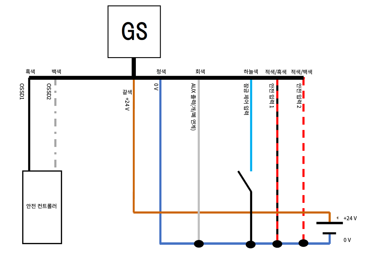- 필수에 체크되어 있는 배선은 OSSD를 정상적으로 ON/OFF 시키기 위해 필요한 배선입니다.