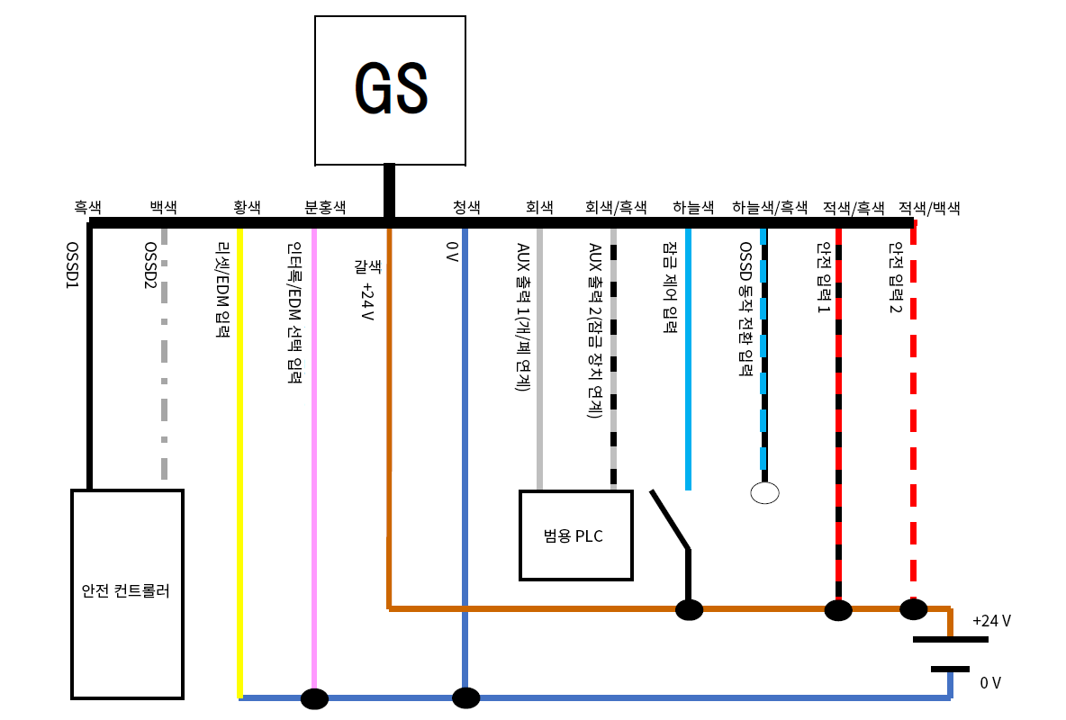 - 필수에 체크되어 있는 배선은 OSSD를 정상적으로 ON/OFF 시키기 위해 필요한 배선입니다.